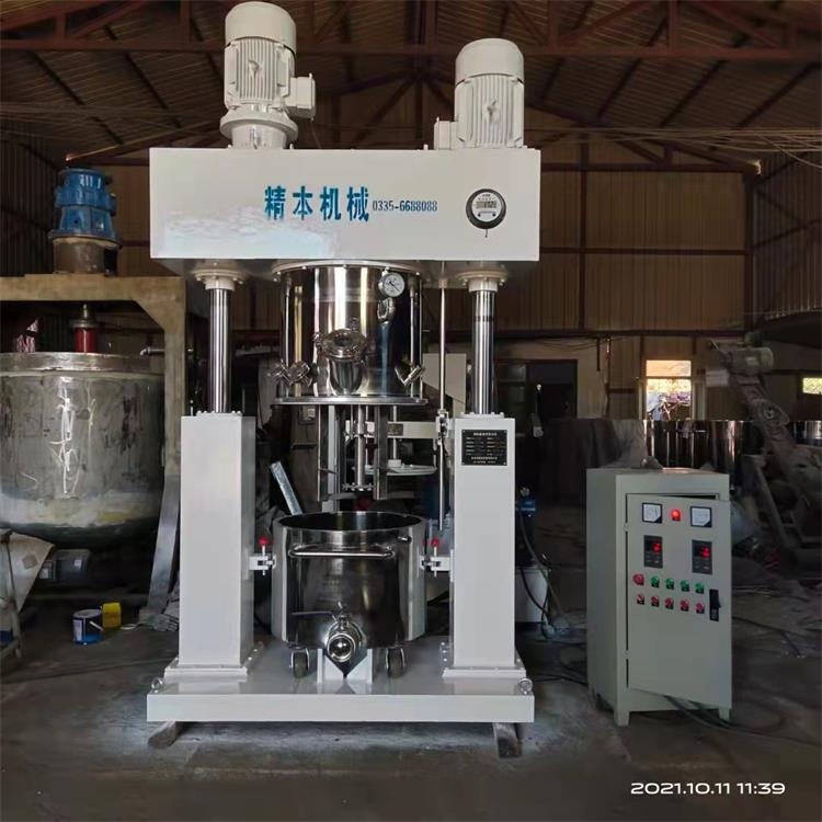 雙行星攪拌機(jī)根據(jù)行星運(yùn)動(dòng)軌跡設(shè)計(jì),攪拌結(jié)構(gòu)有低速攪拌器、高速攪拌器、以及相應(yīng)的刮板裝置組合而成。雙行星攪拌機(jī)的雙組低速攪拌器自轉(zhuǎn)的同時(shí)繞著軸心進(jìn)行公轉(zhuǎn),而且低速攪拌器的形式根據(jù)不同的物料粘度和生產(chǎn)工藝選擇不同的攪拌形式,常見(jiàn)的攪拌形式包括槳葉式、麻花式、爪式、框式等結(jié)構(gòu),具備良好的混合、反應(yīng)、捏合、溶解的作用;高速分散器由多層具備極高線速度的鋸齒狀分散盤組成,它同樣在高速自轉(zhuǎn)的同時(shí)繞著軸心進(jìn)行公轉(zhuǎn),能夠?qū)⒎哿希ㄖ鷦┛焖俚姆稚⒌綕{料里,具備很強(qiáng)的分散作用;刮板裝置根據(jù)客戶實(shí)際的生產(chǎn)工況選配。