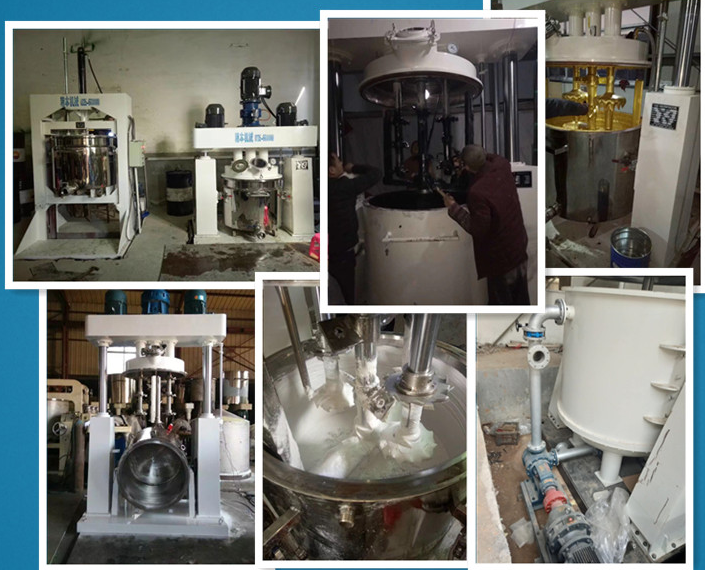 是一種多功能、強制性攪拌機,釜內(nèi)有三根不同形式的攪拌器,其中一根低速攪拌器在繞釜體軸線轉(zhuǎn)動,其余兩根高速攪拌裝置又以不同的轉(zhuǎn)速繞自身軸線高速自轉(zhuǎn),使物料在釜內(nèi)作復雜的運動,受到強烈的剪切和混合。設(shè)備內(nèi)山形刮壁刀繞釜體軸線轉(zhuǎn)動,將粘在壁上和底部的原料刮出參與混合,使其效果更為理想。設(shè)備密封性好,可電加熱(水冷卻)抽真空,具有良好的排氣除泡。強力分散機缸蓋可液壓升降,缸體可自由移動,操作十分方便。強力分散機攪拌器的形式,根據(jù)物料要求可為多層槳葉式、框式、蝴蝶式、葉輪式等。攪拌機通常配套系列液壓擠出機,以實現(xiàn)膏狀物料的擠出。